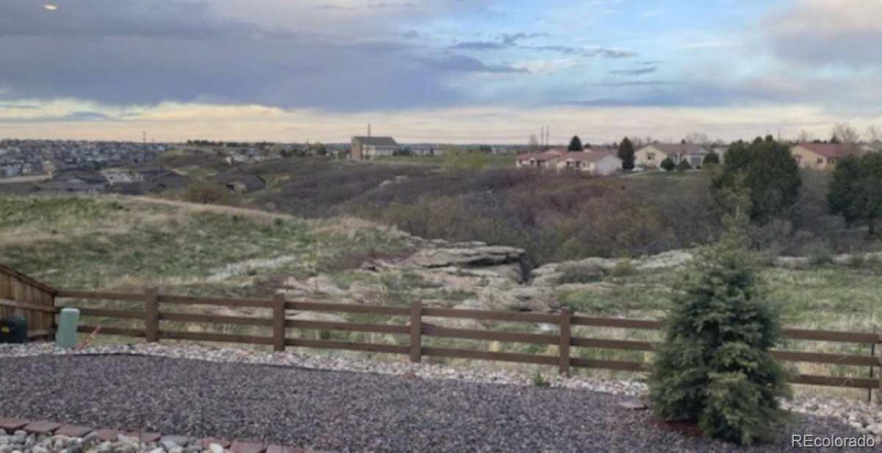 Sought-after cul-de-sac location backing to protected open space, no home directly behind. Few homes in Terrain offer a setting this open and visually striking, with expansive vistas, natural rock formations, and occasional wildlife enjoyed right from the backyard patio. The east-facing orientation welcomes morning light and provides shaded afternoons ideal for outdoor dining and relaxing.Inside, the open-concept kitchen, dining, and living areas are thoughtfully positioned to capture the views. Honey-toned wood floors and a gas fireplace with stone surround anchor the living space, while large windows frame the landscape and fill the home with natural light.The main level features a private bedroom and full bath, plus a separate flex room currently staged as an office, ideal for guests, remote work, or multi-generational living.Upstairs, three additional bedrooms are arranged in a well-separated layout. The spacious primary suite includes a ¾ ensuite bath with walk-in shower, private water closet, and large walk-in closet. Two secondary bedrooms are tucked down the hall and share a full bath. A versatile loft provides additional living or recreation space, and the generously sized laundry room adds everyday convenience.The unfinished basement offers abundant storage, future expansion potential, and plumbing stubbed for a future bath.Professionally designed backyard landscaping is contracted with an award-winning company and scheduled for completion by 4/15/2026 (weather permitting), including grading for approximately 670 square feet of usable lawn, new irrigation, and water-conscious sod.Minutes from Historic Downtown Castle Rock, shopping, dining, trails, pools, and quick highway access, this move-in-ready home offers a premium rear setting and room to grow.A rare opportunity to own a cul-de-sac home backing to protected open space in one of Castle Rocks most desirable communities. Schedule your private showing today!