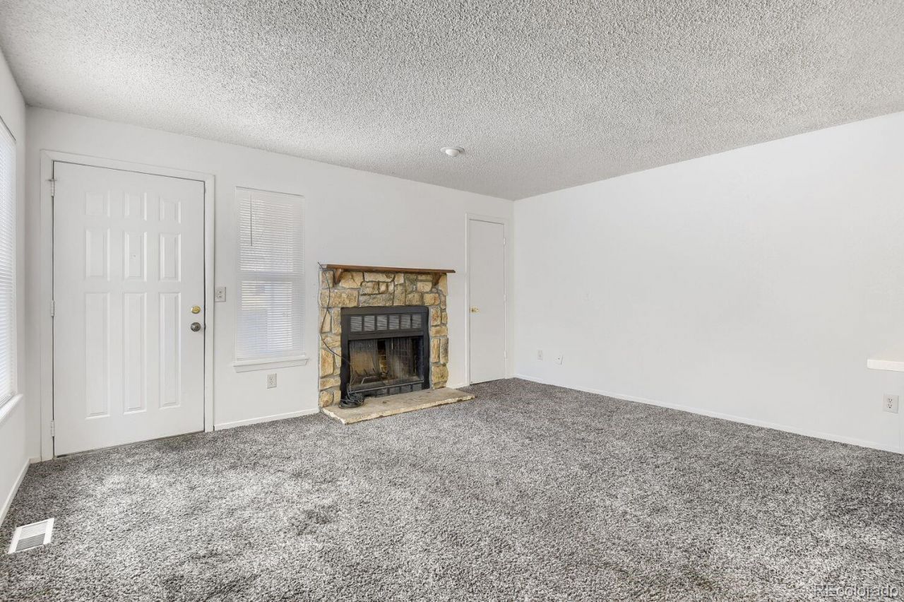 Updated and Charming ground floor, one bedroom, one bath condo! Just move in and enjoy! May be best location in the complex! This tucked away retreat offers 733 sq ft of efficient living space! Condo is distanced from the parking lots and roads and actually has grass and trees out your front door with small porch...yet it is only a few steps from your car. Freshly painted condo boasts white shaker cabinets, quartz counters with stainless steel appliances; washer and dryer included. Spacious bedroom with a walk in closet, a cozy wood-burning stone fireplace, larger windows to let the light stream in, and blinds for your window coverings. Very close to Aurora Town Square, medical facilities, public transit, restaurants, shopping, and easy access to highways and the light rail. Make this your home, or a great opportunity for investors looking to add to their portfolio. A must see at an excellent price!